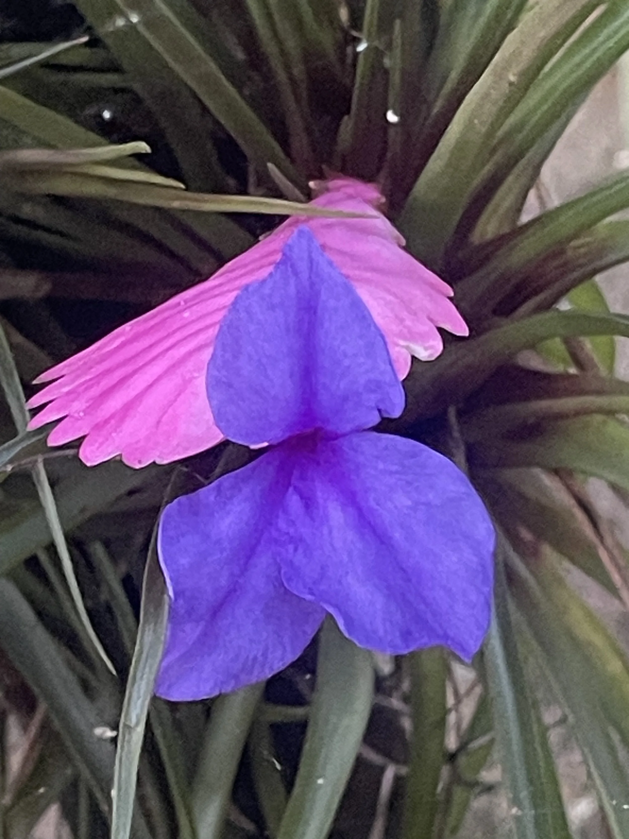 We saw too a flower of vibrant pink and purple, with a scent of cinnamon, shimmering with life (bougainvillea family).