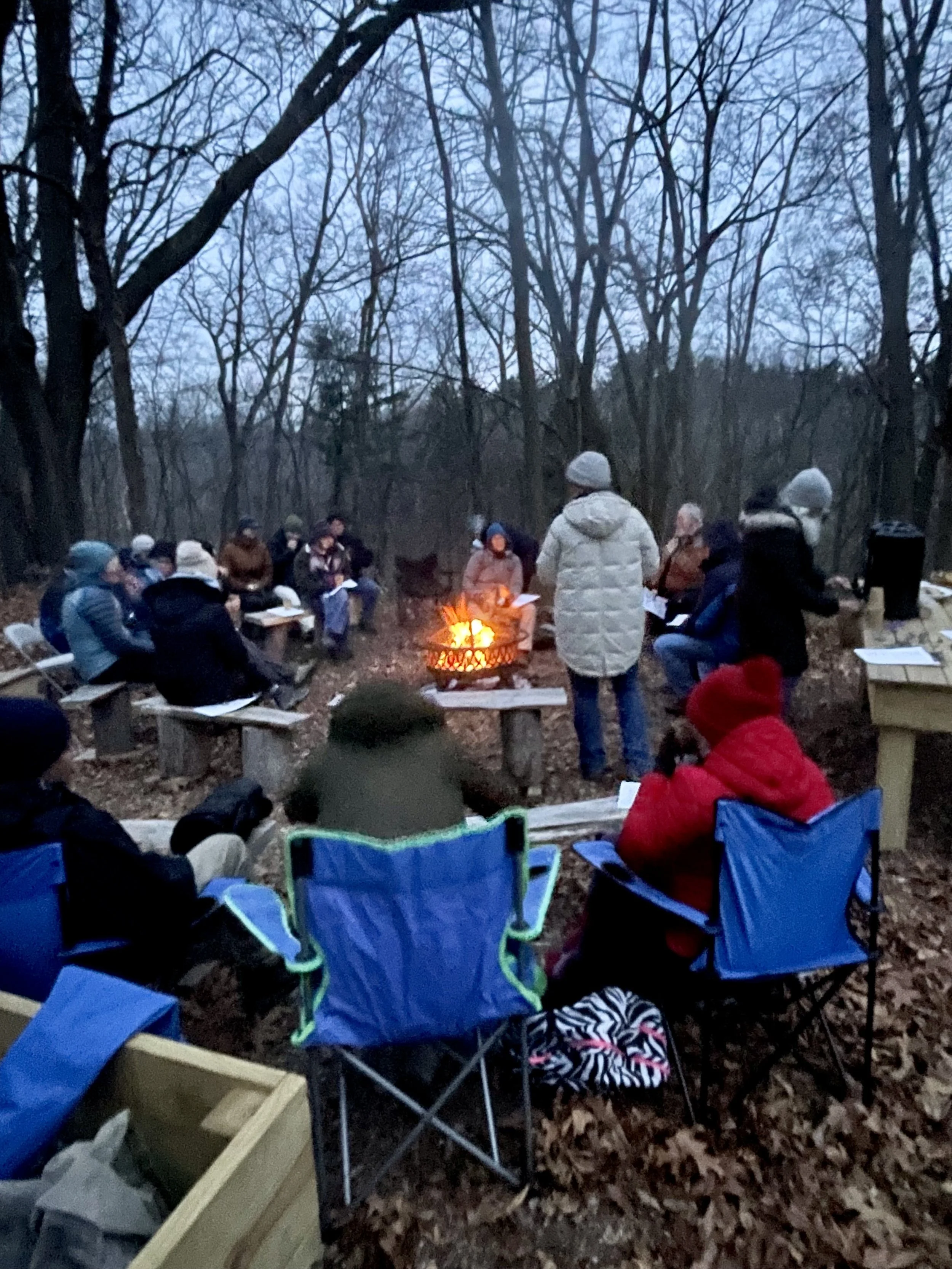 December 13th late afternoon, NS SING hiked in preparation for the Winter Solstice (arrives on 21st). We hiked along the beautiful Ipswich River and just before darkness set in we gathered by a fire. A lovely way to welcome Winter and the dark.